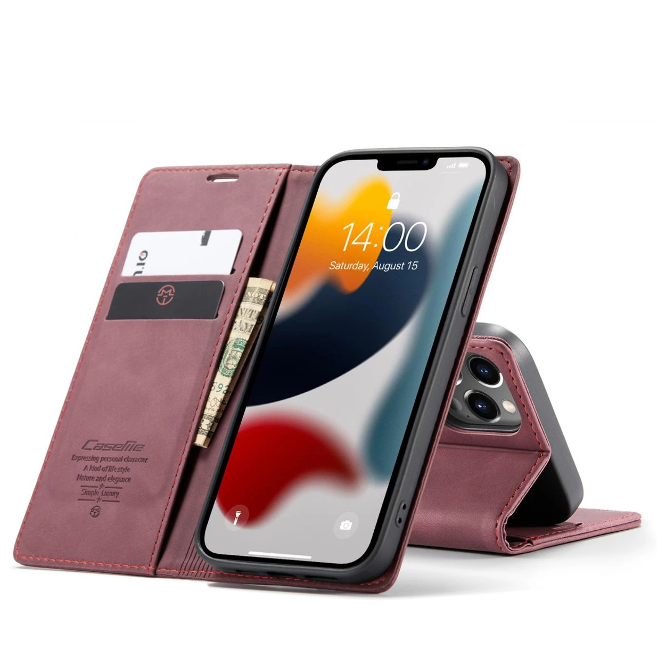 - Â Â Â 1 x Wine iPhone 13 Pro Max CaseMe Slim 2 Card Slot Classy Wallet Case